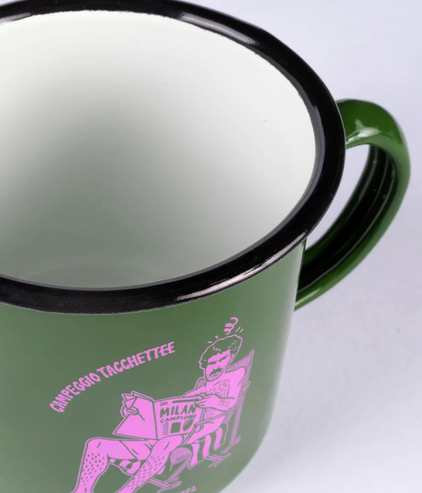 TAZZA CAMPEGGIO VINTAGE IN LATTA DETTAGLI PRODOTTO Tazza da campeggio in latta con stampa tampografica
