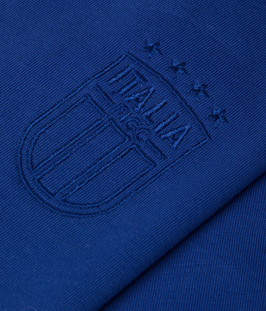 Dettagli in maglieria creati da Renzo ed applicati a mano da Stefania | Ricamo Azzurri FIGC lato cuore | Doppie impunture