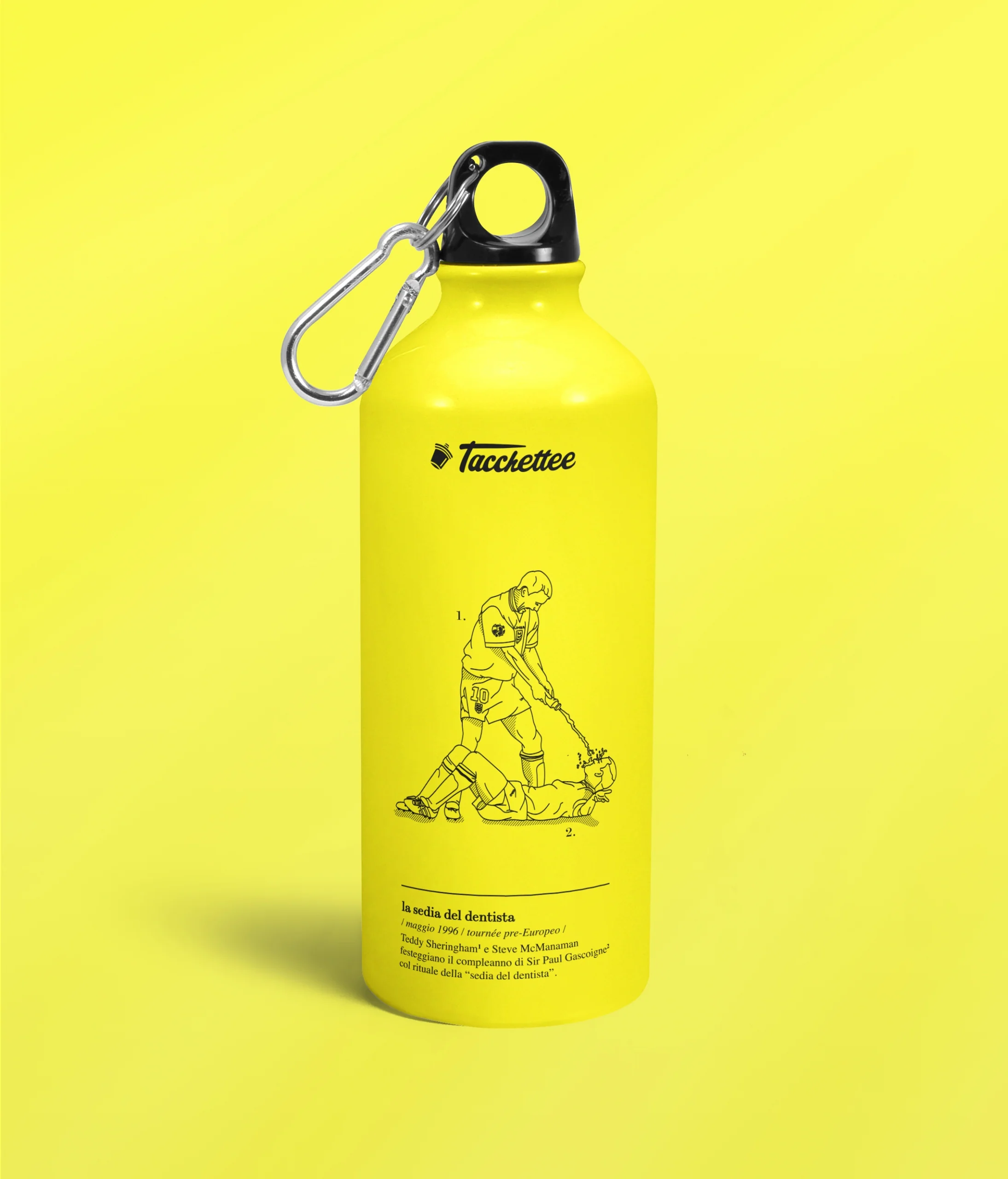 BORRACCIA (500 ml) IN ALLUMINIO CON MOSCHETTONE DIMENSIONI PRODOTTO 6,5 cm (Diametro) X 21,5 cm DETTAGLI PRODOTTO Borraccia in alluminio (500ml) colore Giallo. Tappo a vite con chiusura di sicurezza e moschettone in metallo.